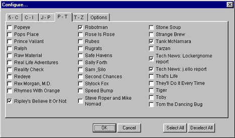 far too many options to fit on one screen. The King Features comics were